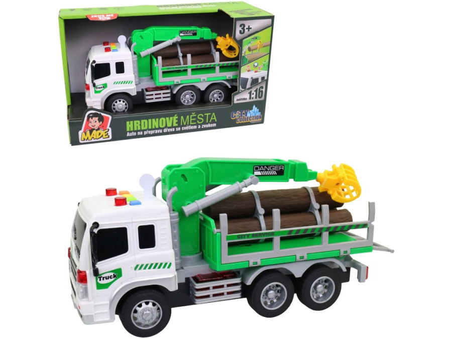 Made Auto na přepravu dřeva, na baterie se světlem a zvukem, 26cm