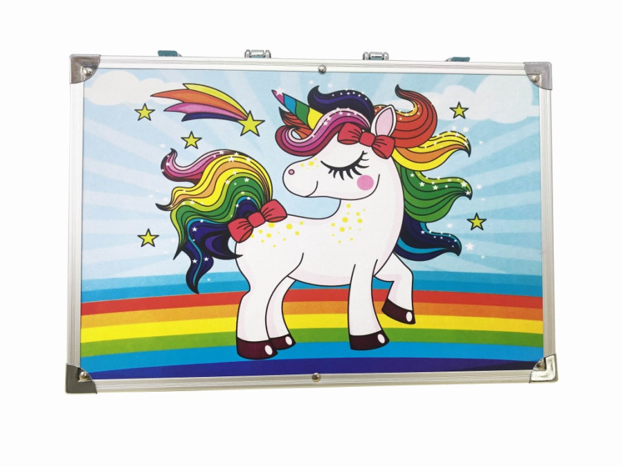 Velká umělecká sada v krásném hliníkovém kufříku, ideální pro kreativní duše. Přehledně uspořádaný v praktickém aluminiovém kufříku, který si můžete vzít kamkoliv s sebou. Barevné tužky, pastelky, fixy, vodové barvy a další pomůcky Přenosný kufřík je ideální na doma, do školy i na cesty Skvělý tip na dárek pro děti i školáky Rozviňte fantazii a kreativitu naplno se 145 dílným výtvarným setem!