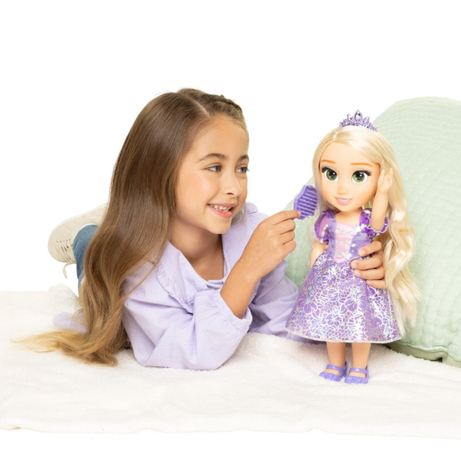 Panenka Disney Princezna Locika panenka má třpytivé oči, krásné šaty s třpytívými aplikacemi, botičky, kartáč na vlasy, má kloubové spojení krku, rukou a trupu.