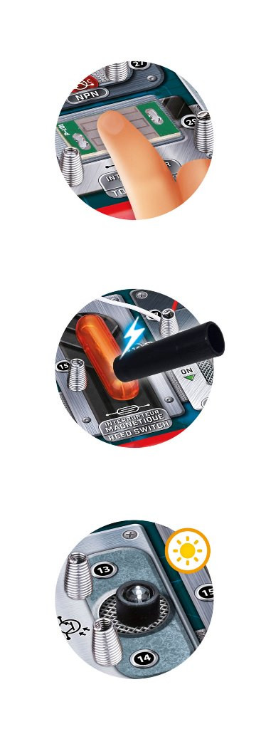 Dětský elektronický pult umožňuje tvorbu elektrických obvodů s různými funkcemi. Děti se naučí sestavovat funkční elektrické obvody s bateriemi, žárovkou, motorkem, reproduktorem a dalšími součástkami. Pochopí pojmy jako napětí a proud a seznámí se elektrotechnickými zákonitostmi.