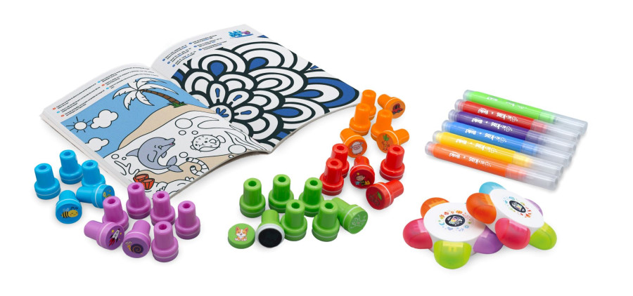 Razítkovací sada pro kreativní děti, které rády kreslí, vybarvují a razítkují.