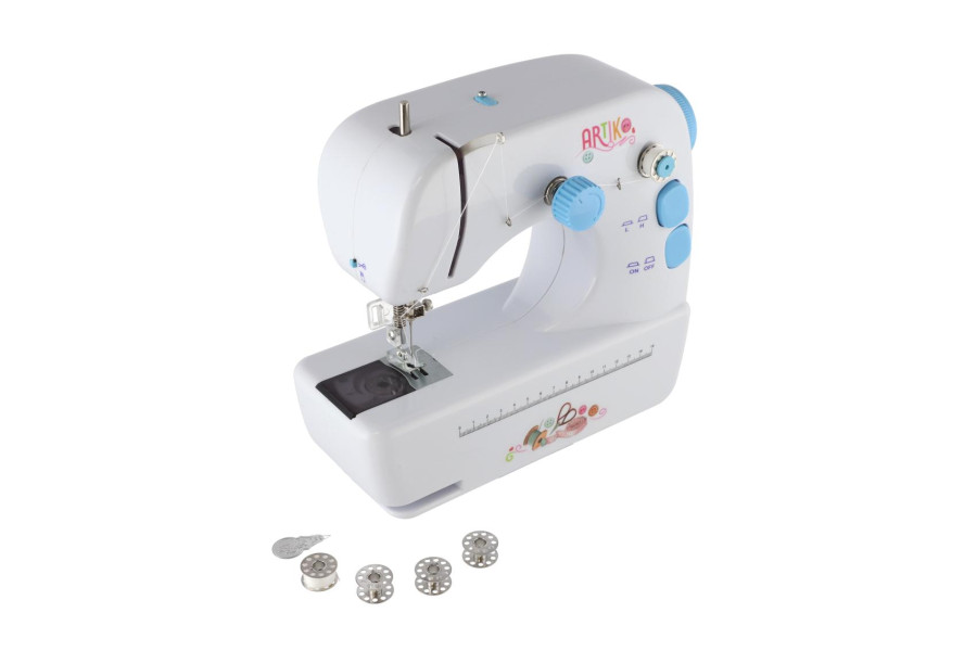 Dětský šicí stroj umožňuje malým švadlenkám vstoupit do světa modních trendů a objevování této fantastické ruční práce. Tento model šicího stroje má kovové konstrukce, cívky, nitě, ale hlavně má plastový ochranný kryt jehly.