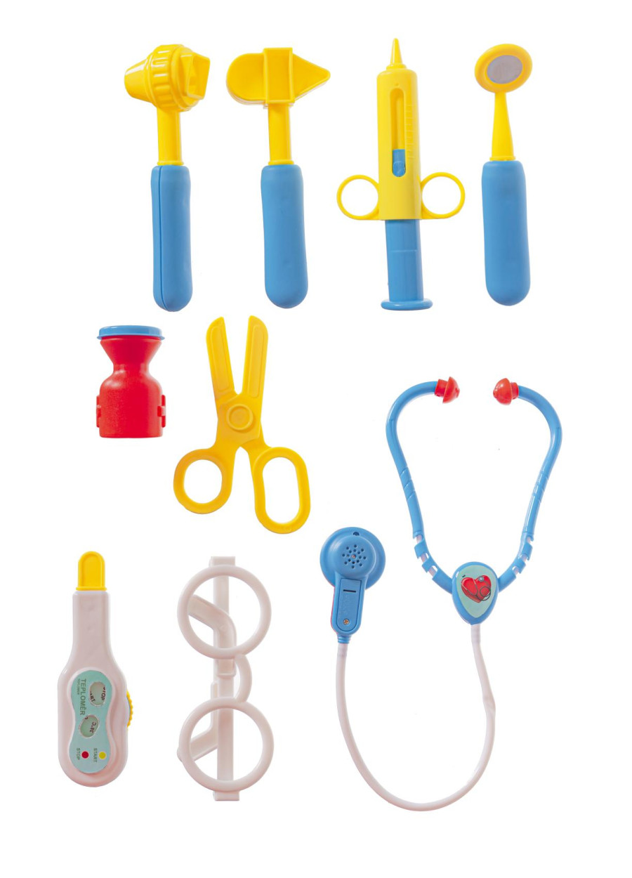 Sada obsahuje vše, co malý lékař potřebuje k ošetření pacientů. Všechny potřebné nástroje jsou uloženy v elegantním kufříku na kolečkách. Baterie jsou uloženy ve stetoskopu, který vydává zvuk tlukotu srdce. Baterie 3x AG10 jsou součástí balení.
