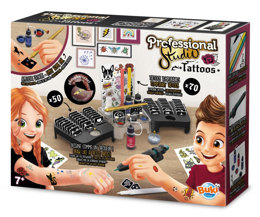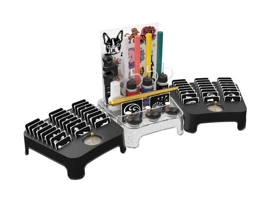 Součástí jsou také 4 listy dočasného tetování pro barevné tetování i svítící ve tmě.