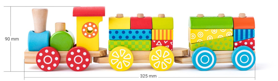 Úkolem dítěte je nasunout kostky vlaku na tyčky tak, aby byl naložen celý náklad. Při této činnosti děti zdokonalují jemnou motoriku, logiku a koordinaci pohybů.
