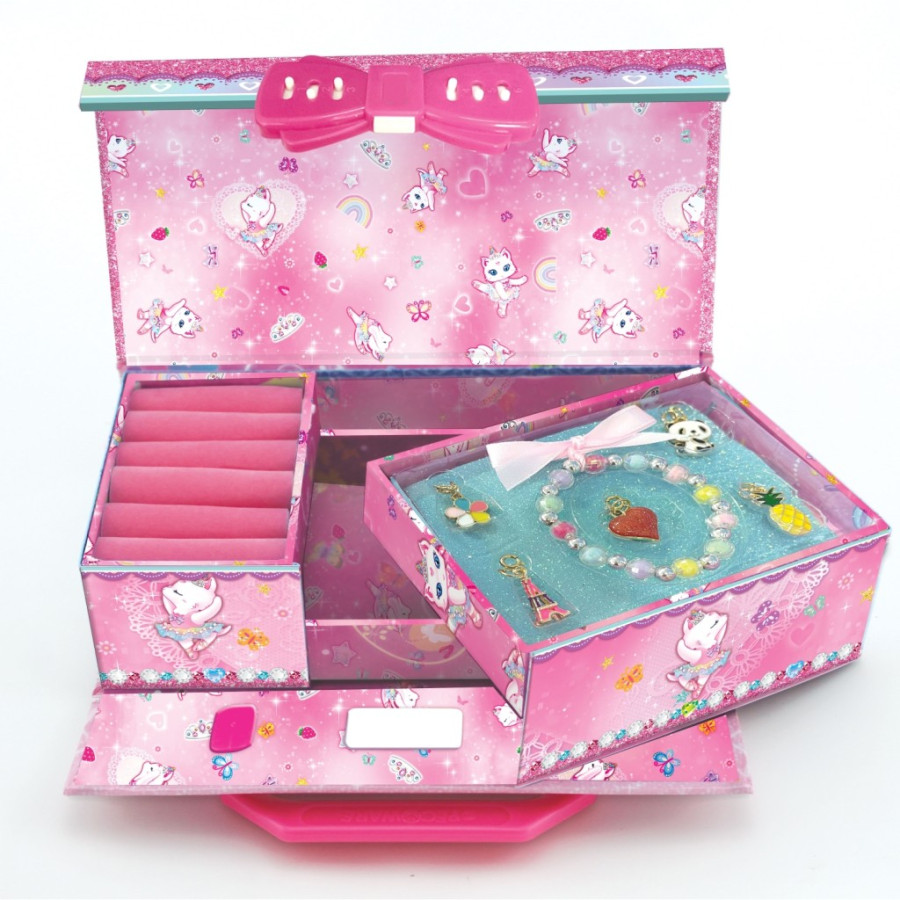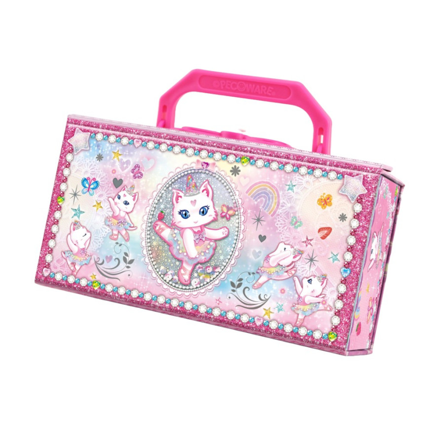 Uložte si své poklady do kufříkové šperkovnice s krásným designem kočičky. Skvělý doplněk pro malé princezny a parádnice. Výrobek je z pevného, odolného papíru s hladkou povrchovou úpravou.