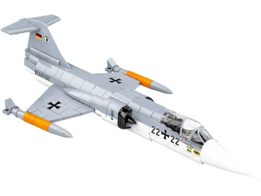 Postavte si model letounu F-104 Starfighter z německého muzea Deutsches Marinemuseum. Model je v měřítku 1:48 a měří 33 x 9,5 cm a rozpětí křídel má 16,5 cm. Má mnoho funkčních částí. Balení obsahuje 428 kostek stavebnice.