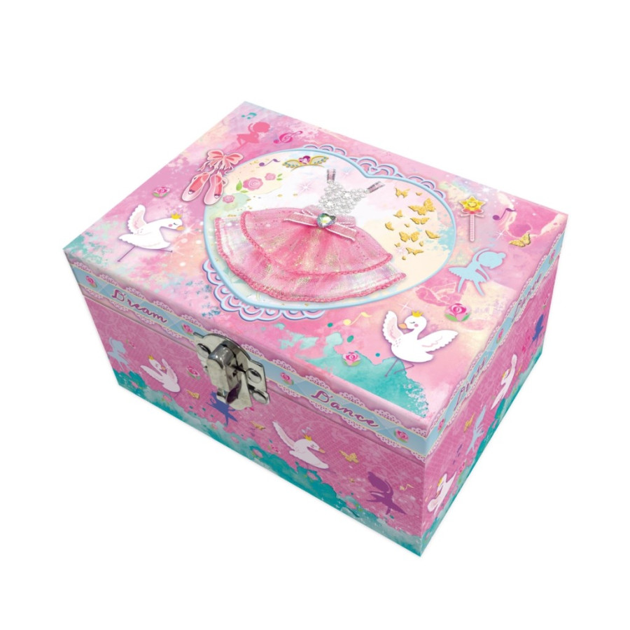 Dětská šperkovnice s krásným designem baleríny a figurkou má krásným vzhled. Po natažení a otevření hraje šperkovnice hudbu.