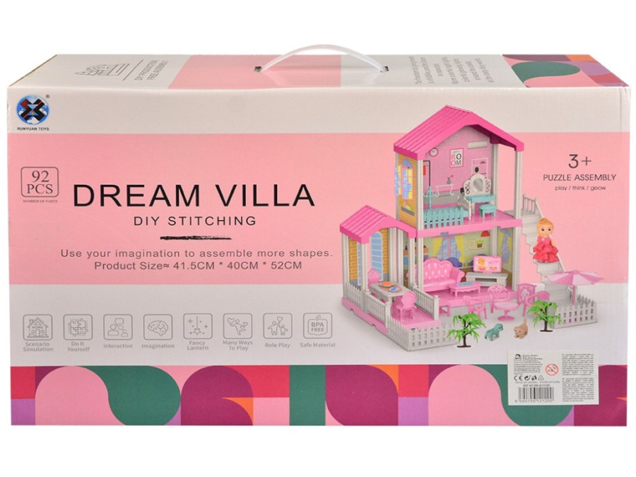 Zábavný a hezký plastový domeček na hraní pro panenky. Zažijte spoustu zábavy a podpořte fantazii svých dětí. Hračka je určena pro děti 3+.