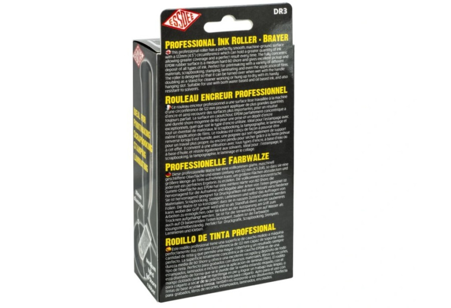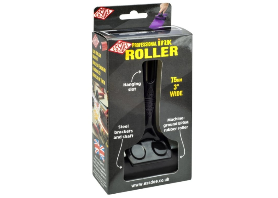 Profesionální váleček na linoryt, 7,5 cm (3"), balený v papírové krabičce. Váleček je vyroben z vysoce kvalitní středně tvrdé (60° shore) gumy (pryže), která zajišťuje rovnoměrné nanášení linorytové barvy beze šmouh.