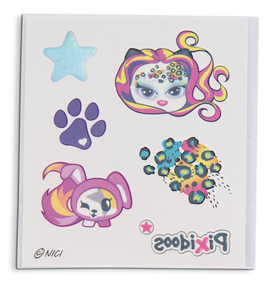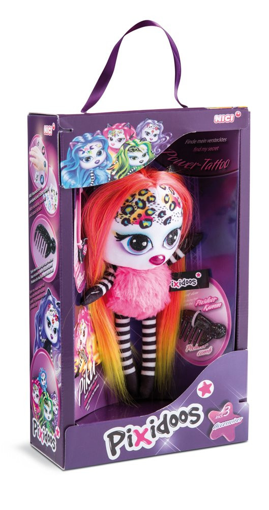 Pixidoos jsou skvělým spojením plyšové hračky a okouzlující panenky! Roztomilé a cool stylové v jednom! Pestrobarevná panenka Piku má super jemné červeno-oranžové vlasy a 3dílnou sadou doplňků ve stylové dárkové krabičce. Sada doplňků obsahuje tetovací samolepky, třpytivý hřeben a náramek přátelství Pixidoos.