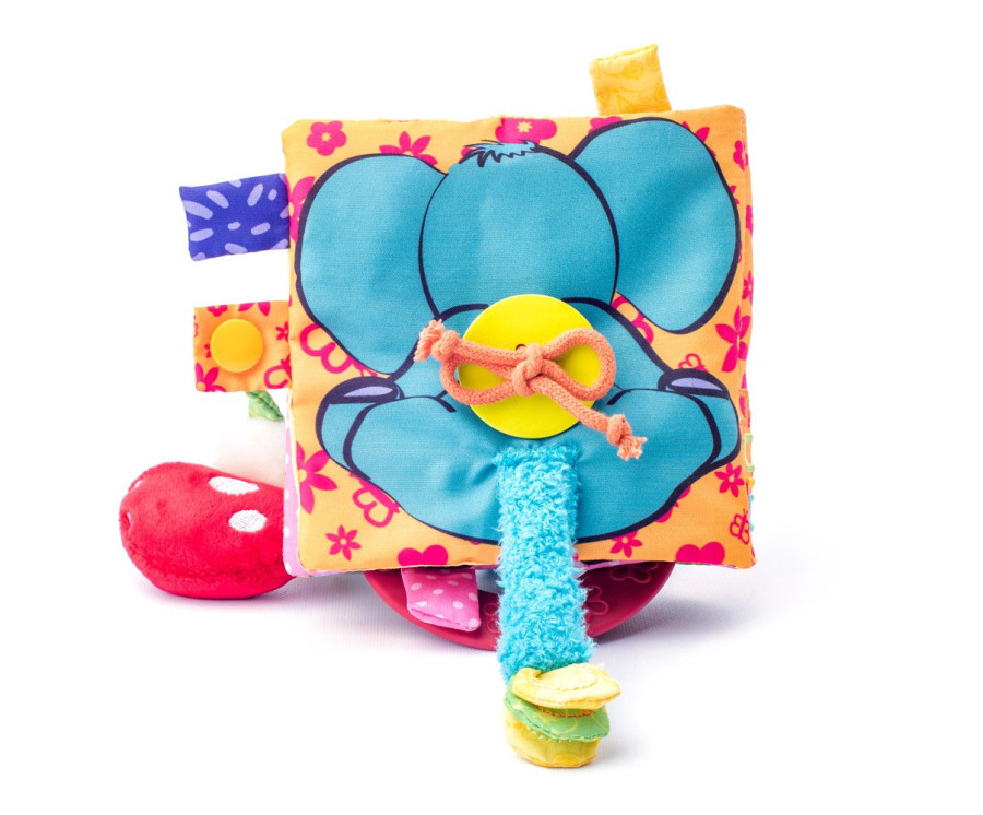 Každý její detail je promyšlený tak, aby zaujal. Najdeš zde pískátka, kousátka, množství částí, které vydávají zvuk mačkajícího papíru, části, které se dají odklápět, vsunovat, okusovat a prozkoumávat.