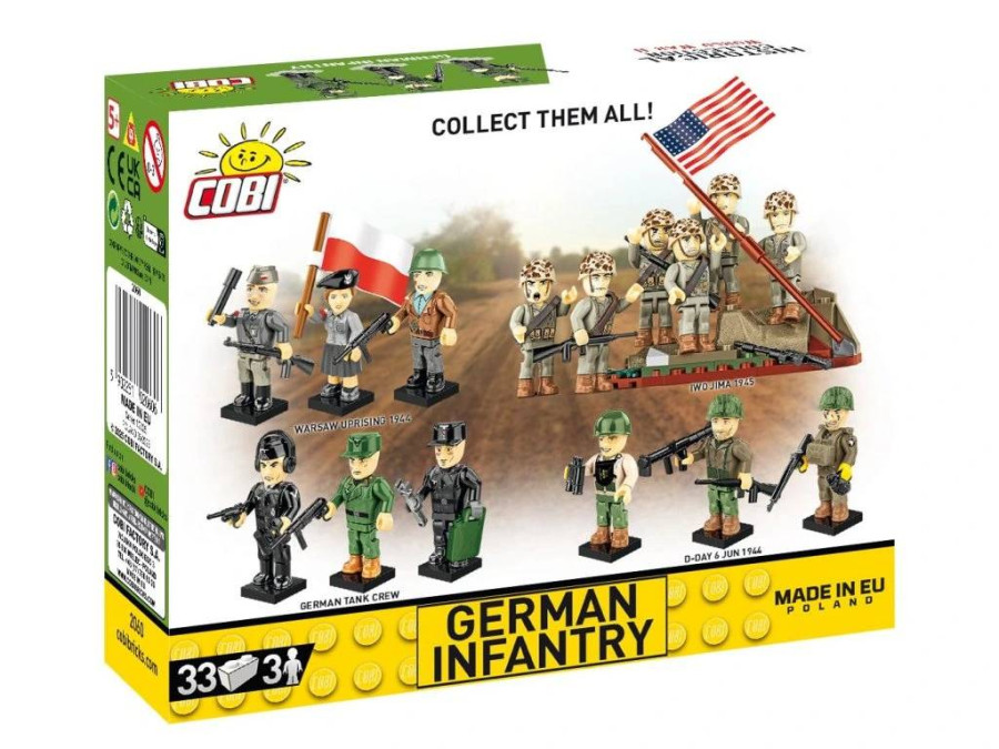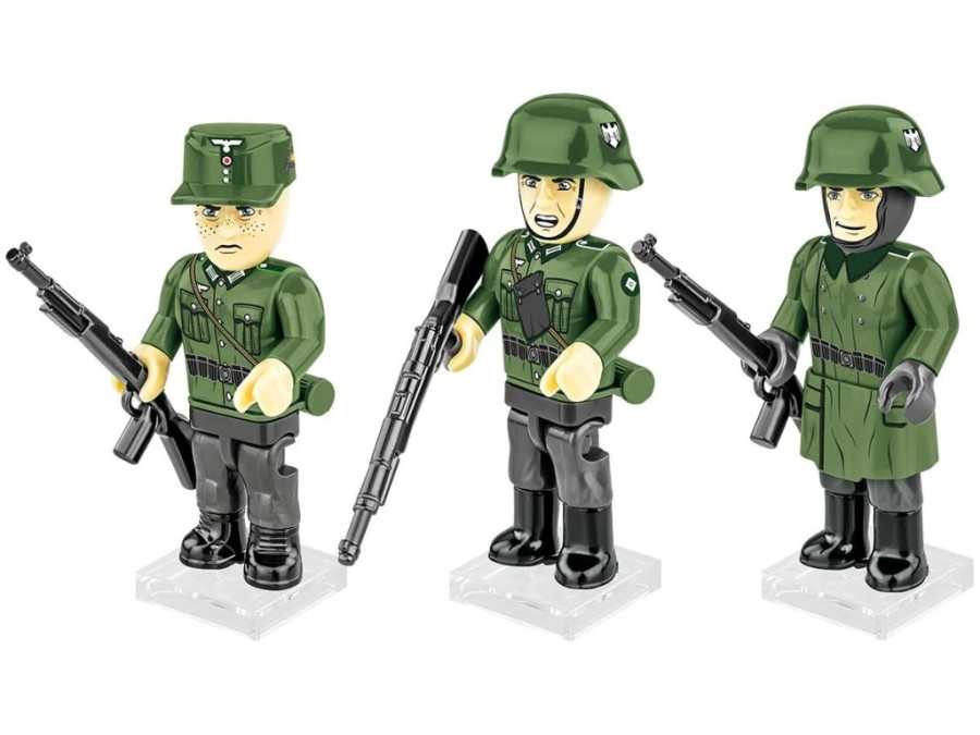 Stavebnice Cobi tří figurek německá pěchoty z 2. světové války. Tato jedinečná sada figurek obsahuje dvě realisticky zpracované postavy německých pěšáků a jednu figurku horského myslivce z období 2. světové války. Každá figurka byla vytvořena s výjimečnou přesností a důrazem na detaily.