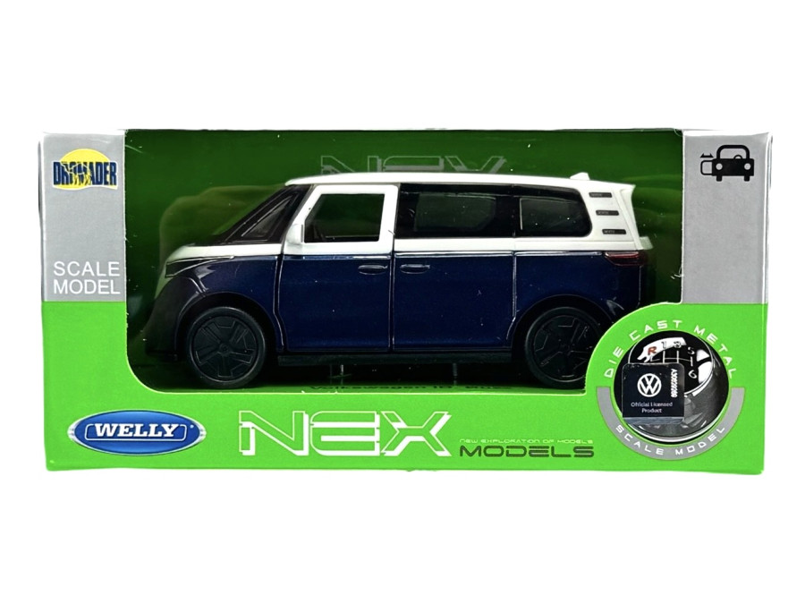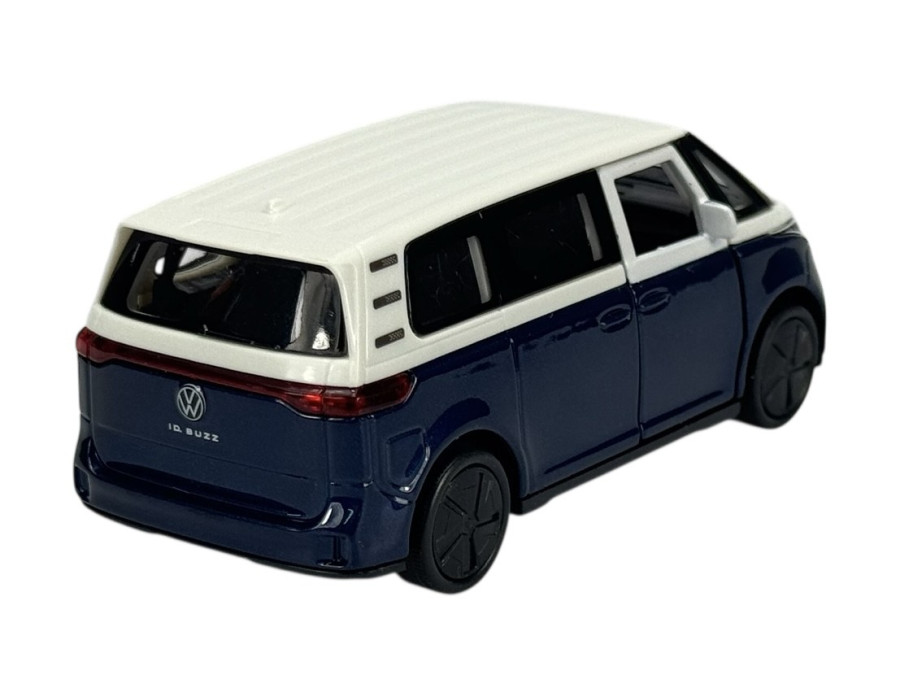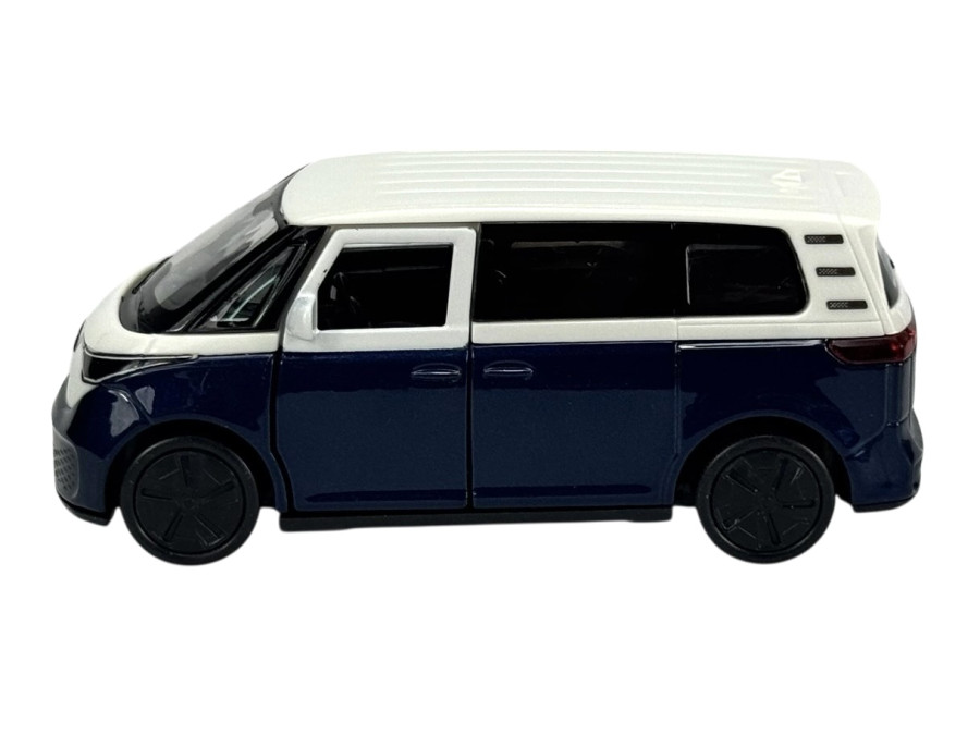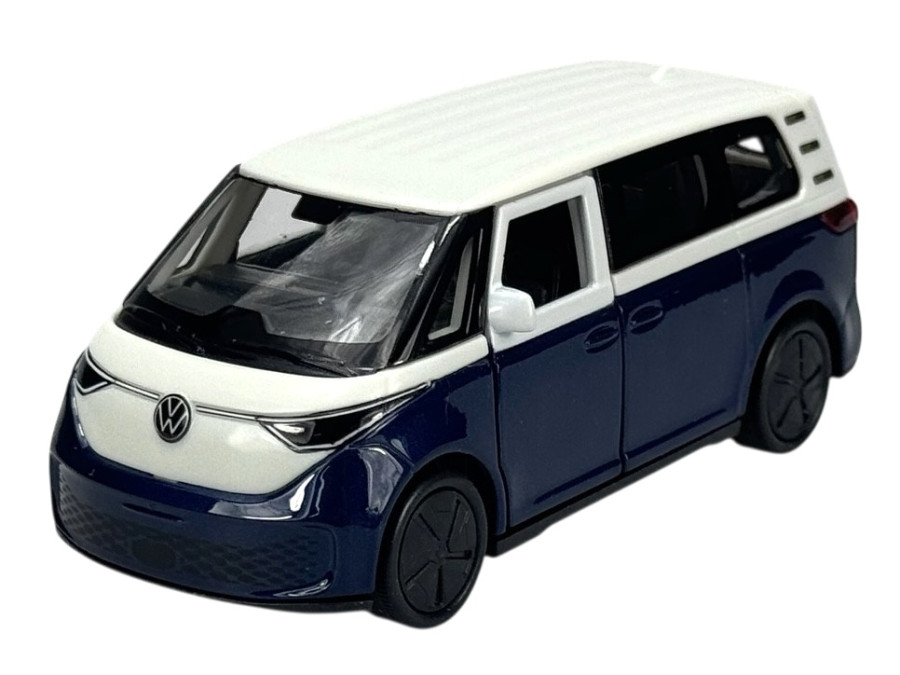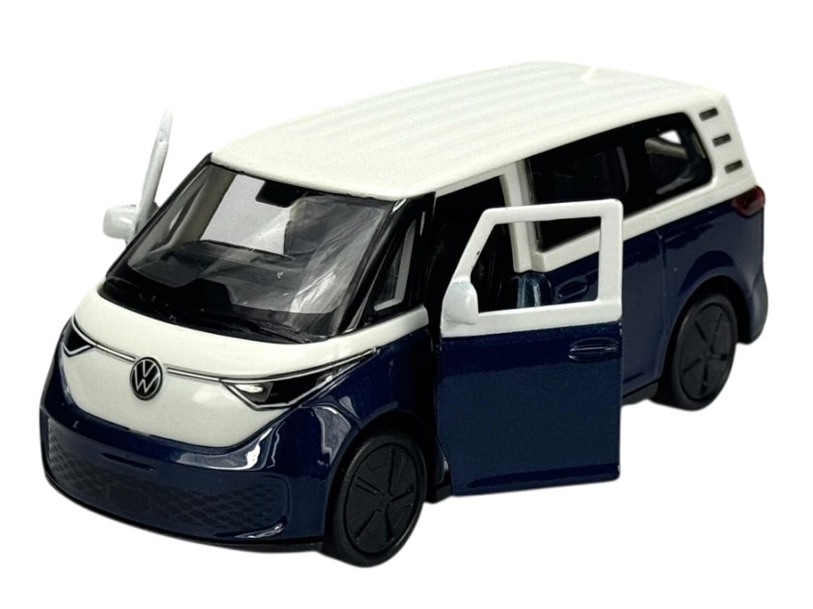 Autíčko Welly Volkswgen ID Buzz modré barvy. Model autíčka má kovové osy kol a detailní zpracování karoserie včetně interiéru automobilu. Na modelu se otvírají přední dveře.