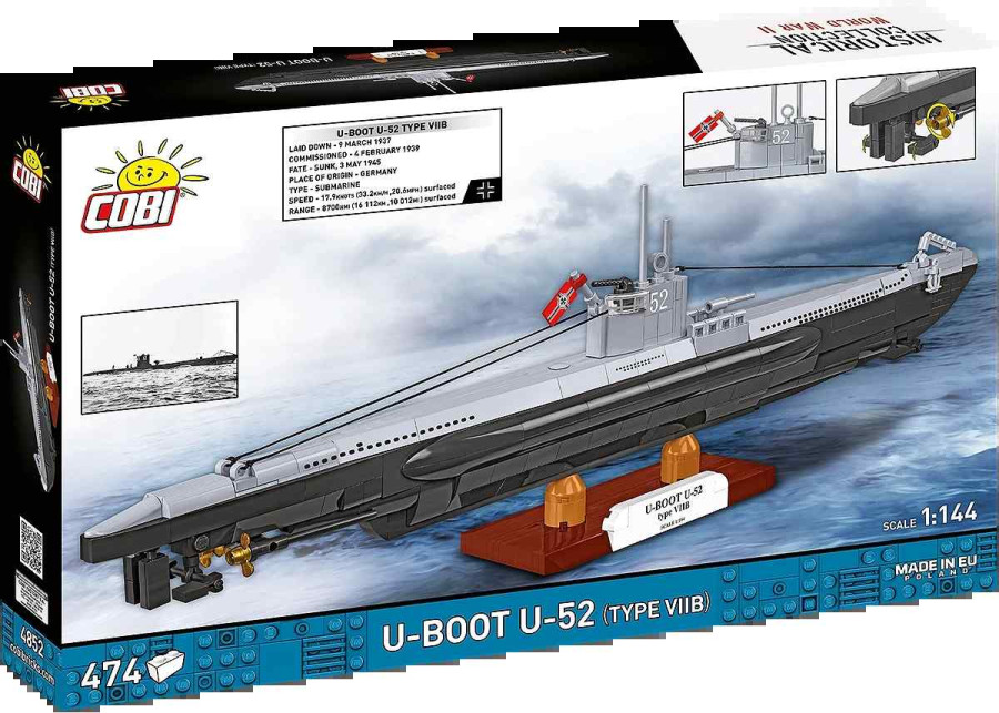Cobi 4852 II WW U-Boot U-52 (type VIIB), 1:144, 474 kostek