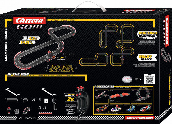 Autodráha Carrera GO!!! dlouhá 4,3m s auty F1 Ferrari a Red Bull, obsahuje, přemostění, rovinky, zatáčky, díl s počítadlem kol a další díly. Můžete si sestavit další různé trati podle své fantazie.