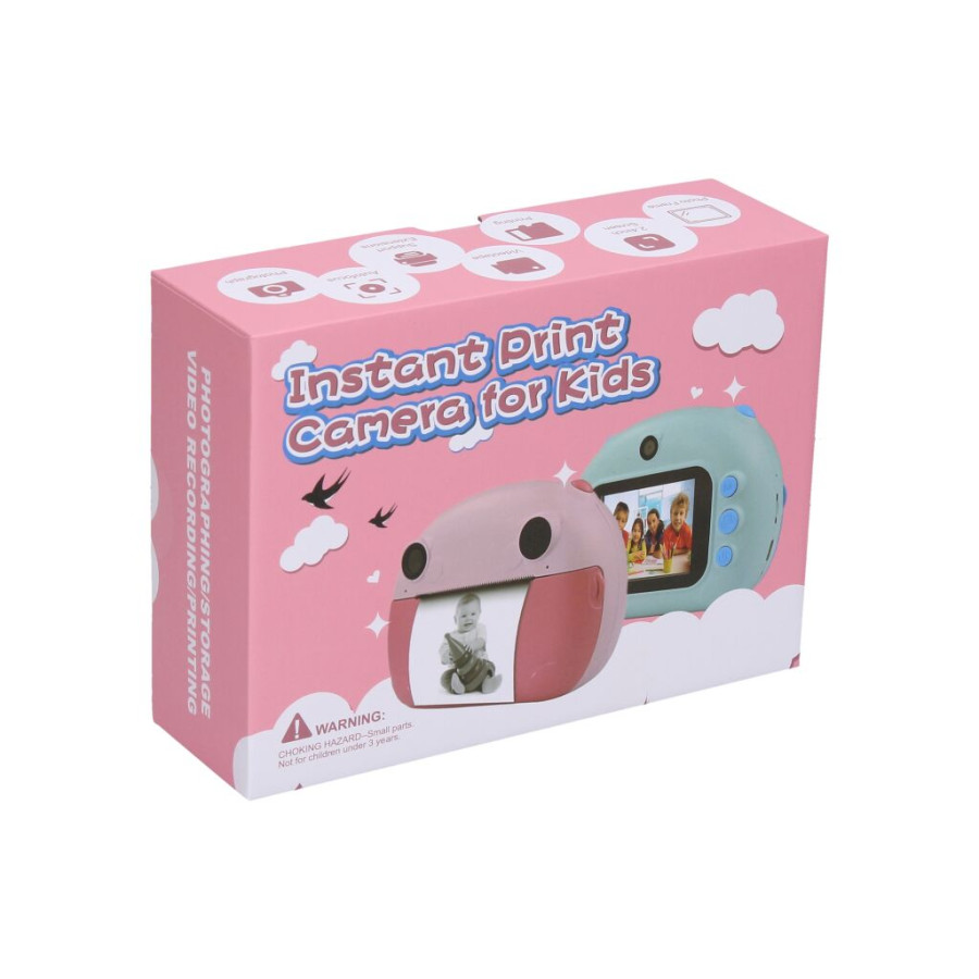 Dětský digitální fotoaparát s tiskárnou a rozlišením fotografií 12 megapixelů (4800x2656), videa Full HD (1920x1080). Fotoaparát má nastavení kvality tisku.