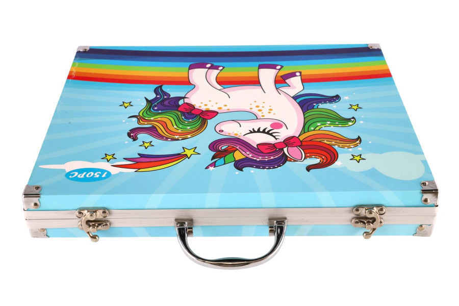 Probuďte svou kreativitu! Tento set obsahuje 150 různých pomůcek v praktickém kufříku s motivem jednorožce . Perfektní pro malování, kreslení a další umělecké aktivity. Ideální pro děti i dospělé.
