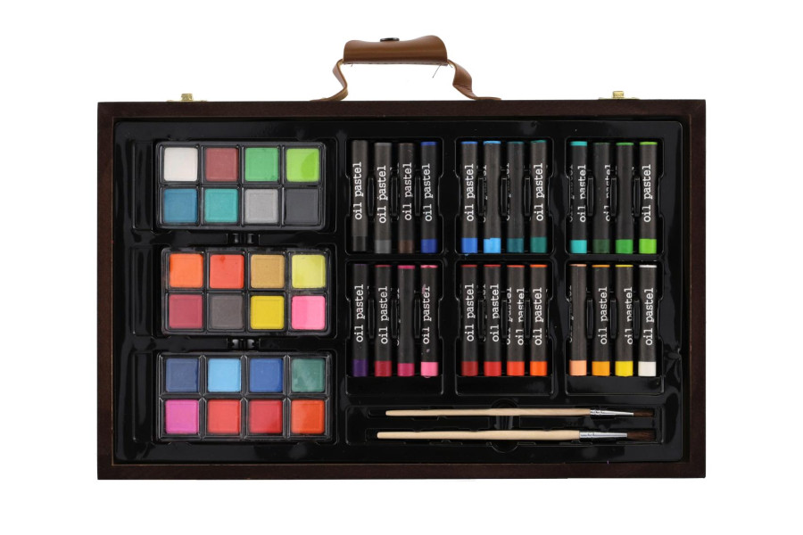 Kreativní výtvarný box, hodící se každému malému umělci, aby měl veškeré nutné potřeby přehledně v praktickém kufříku kdykoli u sebe! Kufr obsahuje pastelky, voskovky, grafitové tužky, vodové barvy, štětce, ořezávátko, gumu (celkem 79 ks).