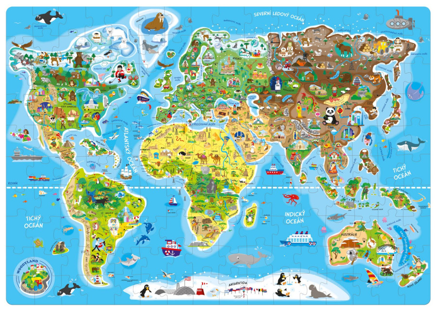 Milujete cestování a skládání puzzle? Pak je tato mapa světa přesně pro vás. Zeměpisné puzzle pro děti s mapou světa a ilustracemi v podobě světových památek a turisty vyhledávaných míst. Puzzle vám pomohou naučit se jaká zvířata v daných oblastech žijí, jaké pamětihodnosti, stavby či přírodní útvary zde naleznou.