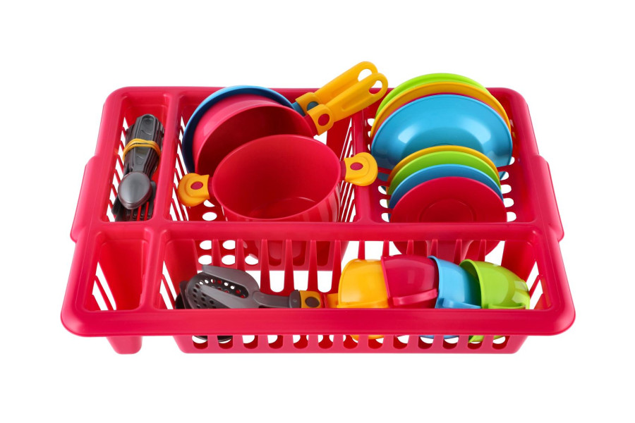 Sada nádobí s odkapávačem pro malé hospodyňky. Rozměr 35x28 cm.