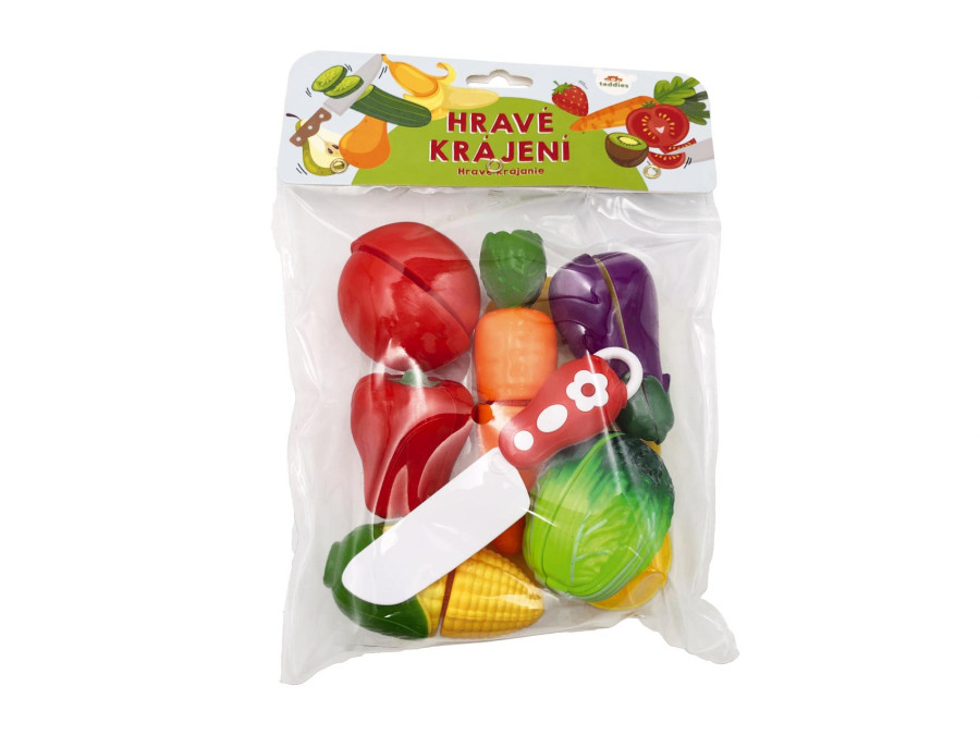 Krájecí zelenina je vhodná pro holčičky, které si rády hrají na kuchařky nebo na prodavačky. Jednotlivé dílky zeleniny jsou spojeny suchým zipem a je možné je jednoduše "krájet" přiloženým nožíkem.