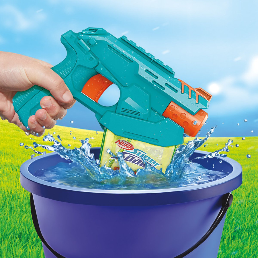 Vodní blaster Nerf Super Soaker Mini Dunk-Fill je vybaven nádržkou která umožňuje rychlé a jednoduché plnění, takže můžete být během okamžiku připraveni na vodní dobrodružství.