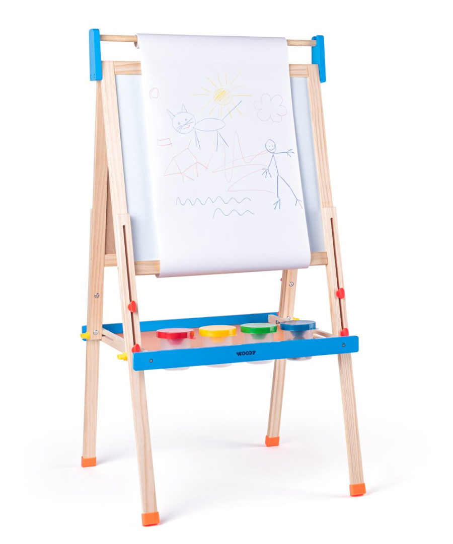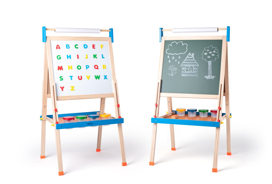 Dětská stojanová tabule s písmeny, role papíru a kelímky, 129x59 cm