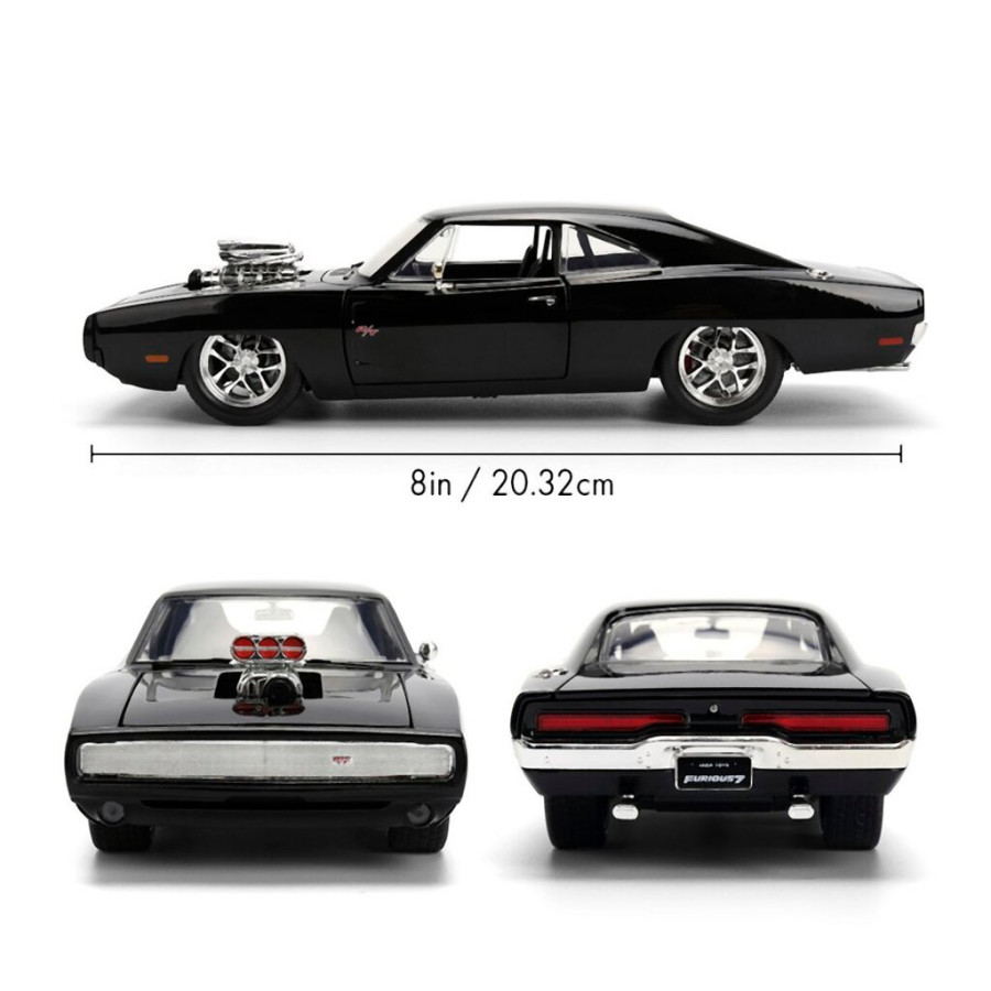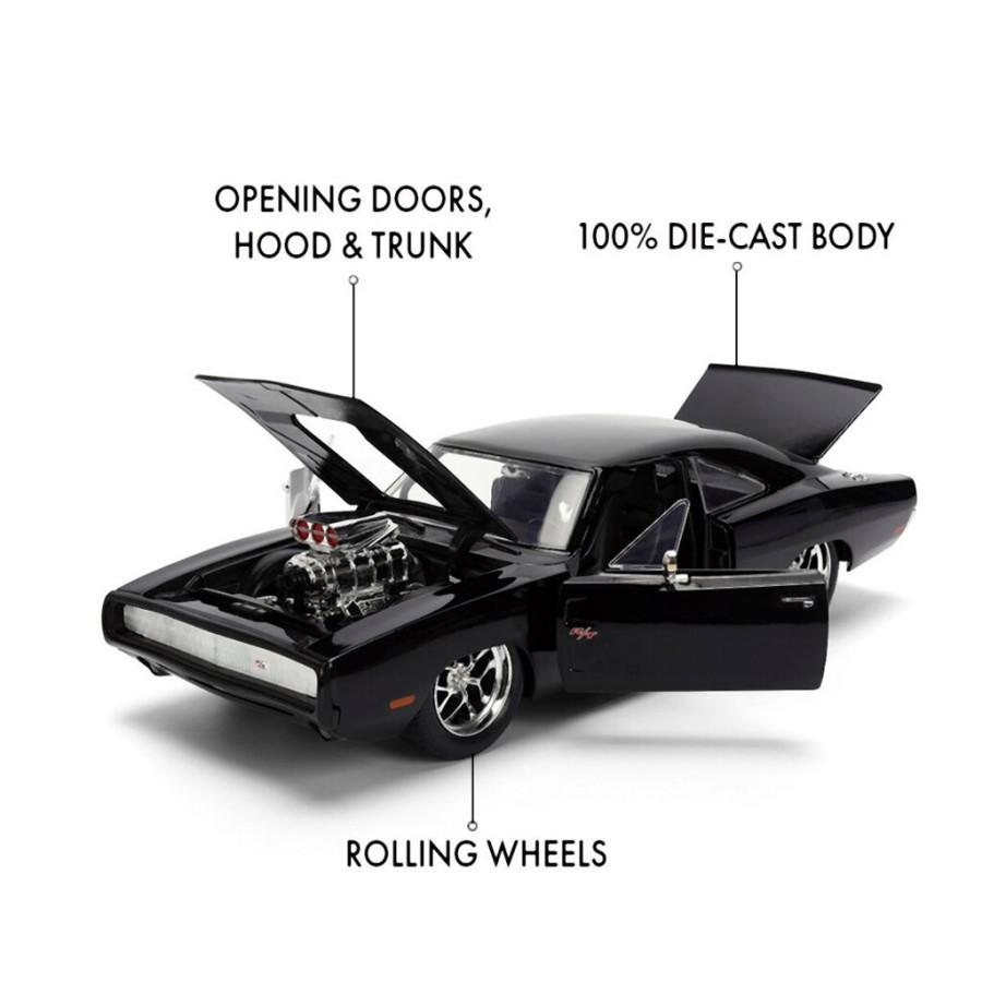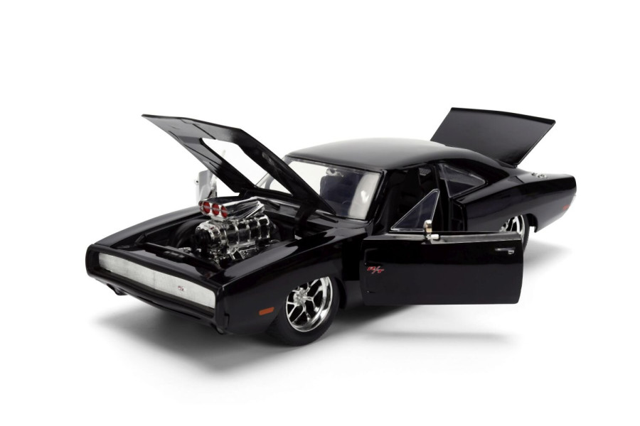 Kovový model auta Dodge Charger 1970 v měřítku 1:24 z filmu Rychle a zběsile. Na volnoběh, otevírací dveře, kufr a kapota.
