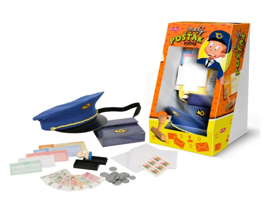 Set pro každého milovníka pošťáctví. Zahrajte si na pošťáka! Budete doručovat důležitá psaníčka nebo objevíte kouzlo práce za přepážkou? K dispozici je razítko, složenky i peníze. Nebo nasaďte pošťáckou čepici a hurá do ulic!