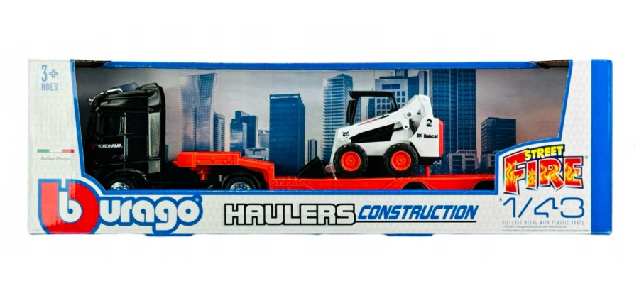 Bburago Haulers construction, Kamion M-B Actros Gigaspace s Bobcat nakladačem, 1:43