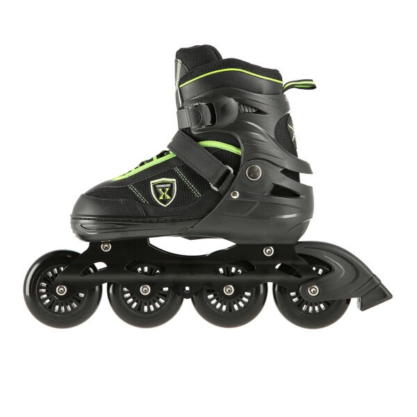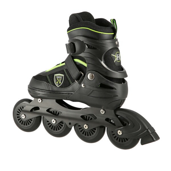 Vnější bota je pomocí stisku tlačítka nastavitelná do čtyř velikostí, toto řešení umožňuje precizní přizpůsobení velikosti podle aktuálních potřeb anebo se používá jako "rostoucí bota", která "roste" spolu s nohou dítěte. Bezpečnost brusle zvyšuje zapínání na dvousekční přezku, řeminek se suchým zipem a šněrování.