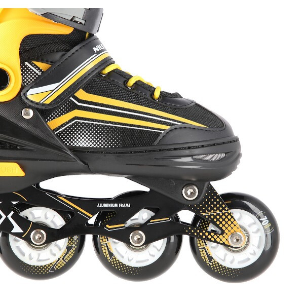 NILS Extreme NH18190 jsou kolečkové brusle s vyměnitelným nožem na led, které jsou určeny pro začínající a středně pokročilé uživatele. Hliníkový podvozek je osazen měkkými PU kolečky s ložisky ABEC7 pro svižnou jízdu.