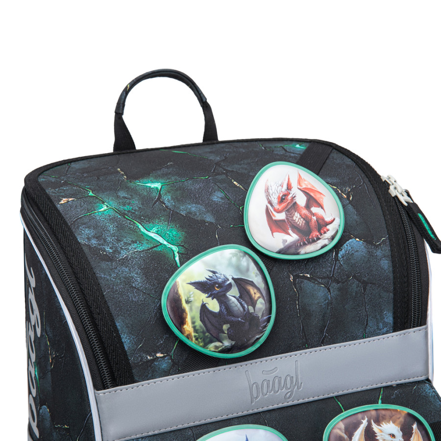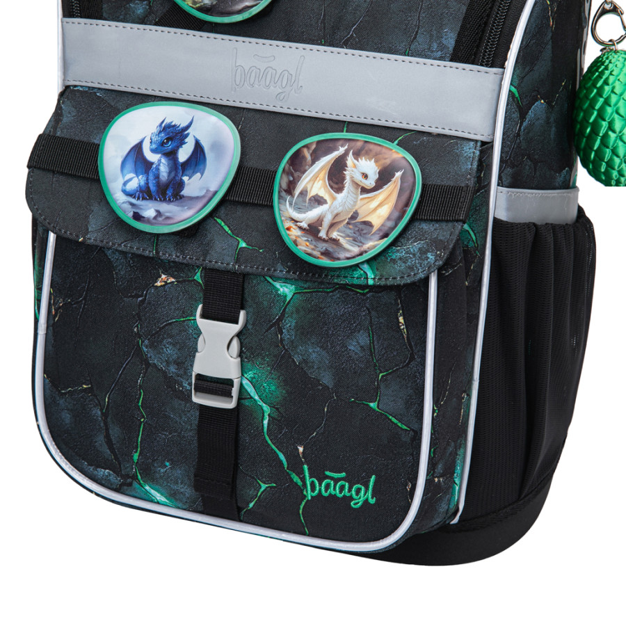• Unikátní systém vyměnitelných odznáčků umožňuje přizpůsobit vzhled aktovky podle nálady a zájmů dítěte.