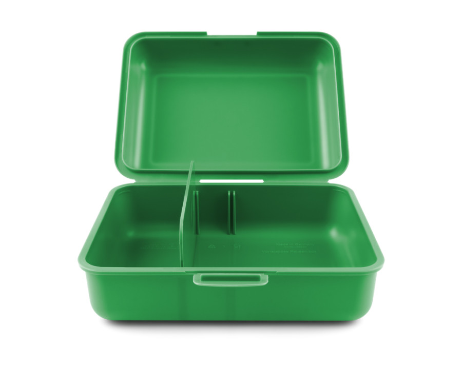 • Plastový box na svačinu v zelené barvě.• Box má uzavírání na jeden zámek a obsahuje dělicí přepážku.