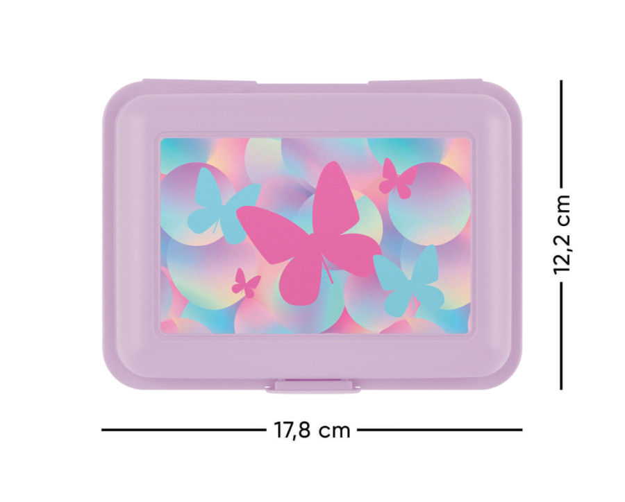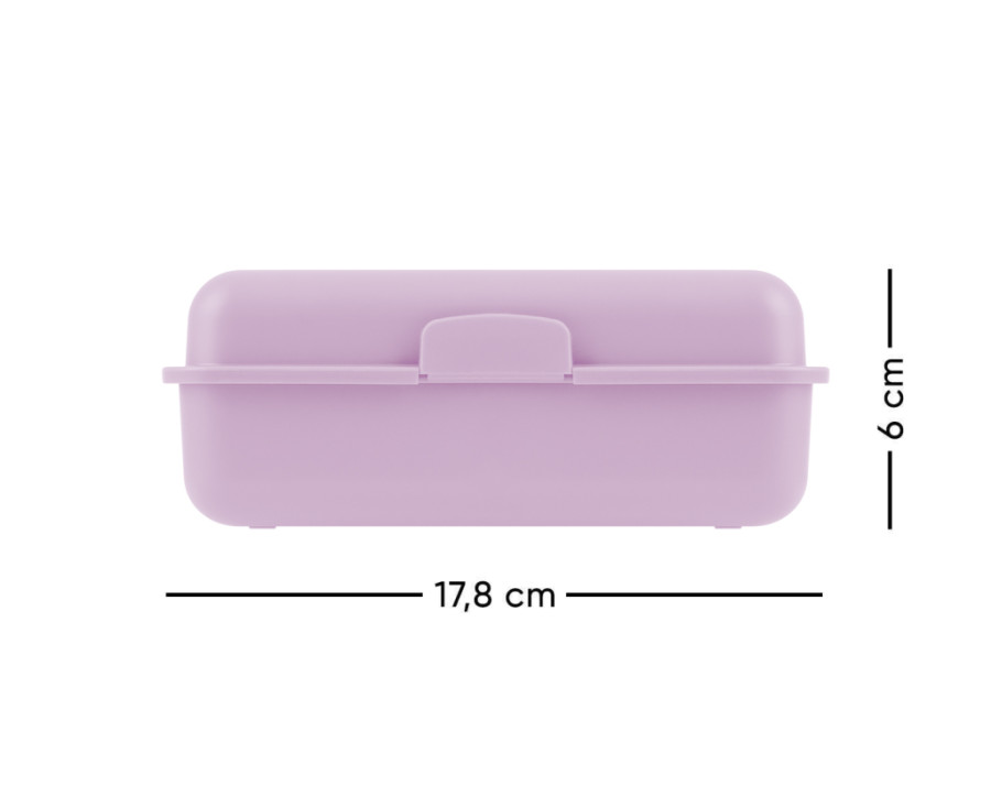 • Plastový box na svačinu ve fialové barvě.• Box má uzavírání na jeden zámek a obsahuje dělicí přepážku.