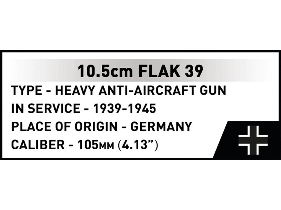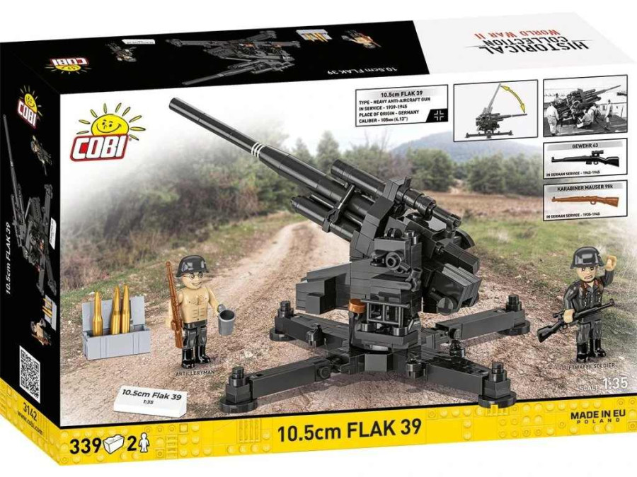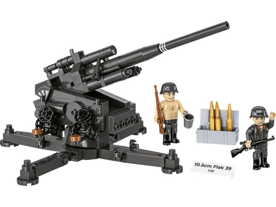 Sestavte si ze stavebnice Cobi 3142 si masivní těžké protiletadlové dělo ráže 10,5 cm Flak 39, které patřilo k pilířům německé protivzdušné obrany během druhé světové války. Model v měřítku 1 : 35 je sestaven z 339 kvalitních kostek a zaujme svou velikostí, technickou propracovaností i realistickým ztvárněním.