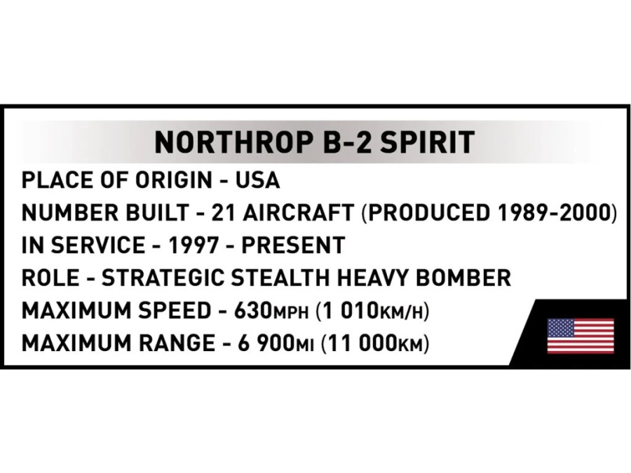 Postavte si stroj, který je pro radary neviditelný. Northrop Grumman B-2 Spirit ze stavebnice Cobi 5916. Northrop Grumman B-2 Spirit je symbolem dominance, přesnosti a inženýrského génia. Nyní si můžete tuto legendu znovu vytvořit vlastníma rukama a vystavit model, který po celá desetiletí vzbuzuje respekt ve vzduchu a obdiv mezi leteckými nadšenci.