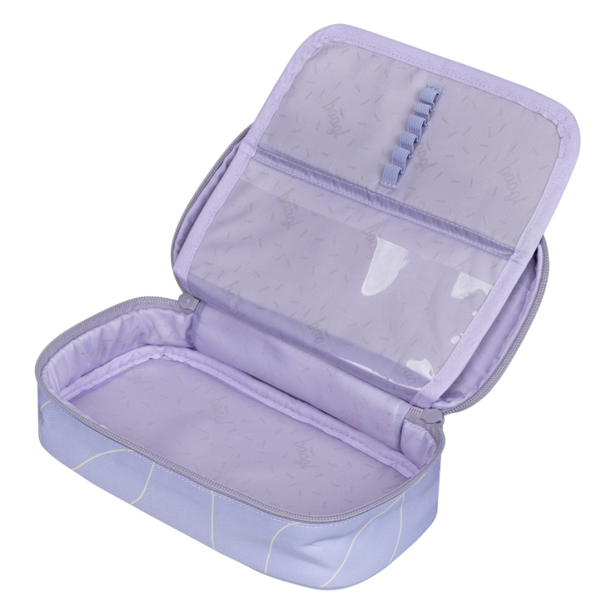 • Kompaktní penál na zip s prostornou hlavní komorou a dvojitou výklopnou chlopní nabízí dostatek prostoru pro psací potřeby i drobnosti.• Součástí penálu je také vnitřní kapsa a okénko na rozvrh hodin.