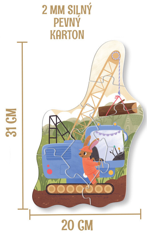 Veselé puzzle pro malé stavitele s extra velkými a pevnými dílky. Děti mohou sestavovat oblíbené stavební stroje z dvoudílných až sedmidílných puzzlí. Součástí Rady a tipy pro rodiče.