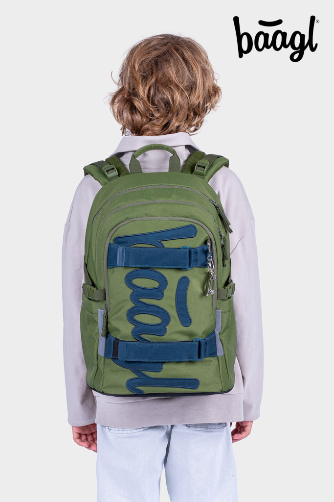 ŠKOLNÍ BATOH SKATE OLIVE• Populární model Skate, s hmotností nepřesahující 900 g a popruhy na uchycení skateboardu, je ideální pro žáky již od třetí třídy ZŠ.