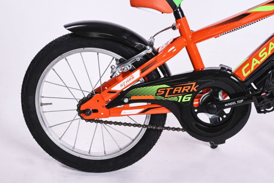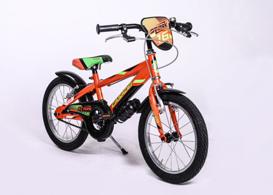 Dětské kolo Casadei Stark Arancio 16 je nádherné chlapecké kolo typu BMX, které vykouzlí úsměv na tváři každého malého závodníka. Kolo má 16palcová nafukovací kola s kovovými ráfky a kvalitními plášti.