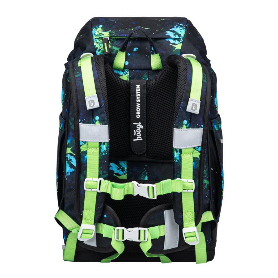 • Ergonomicky tvarovaná záda doplňují plně nastavitelné ramenní popruhy s prodyšným polstrováním, odnímatelný bederní pás a hrudní popruh, které zaručují maximální komfort, stabilitu a správné rozložení zátěže na dětských zádech.
