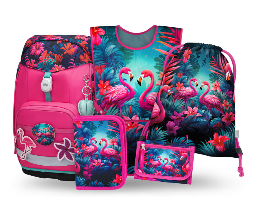 BAAGL SET 5 Airy Plus Plameňáci: batoh, penál, sáček, zástěra, peněženka