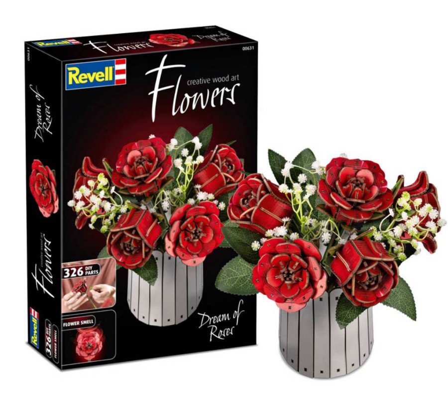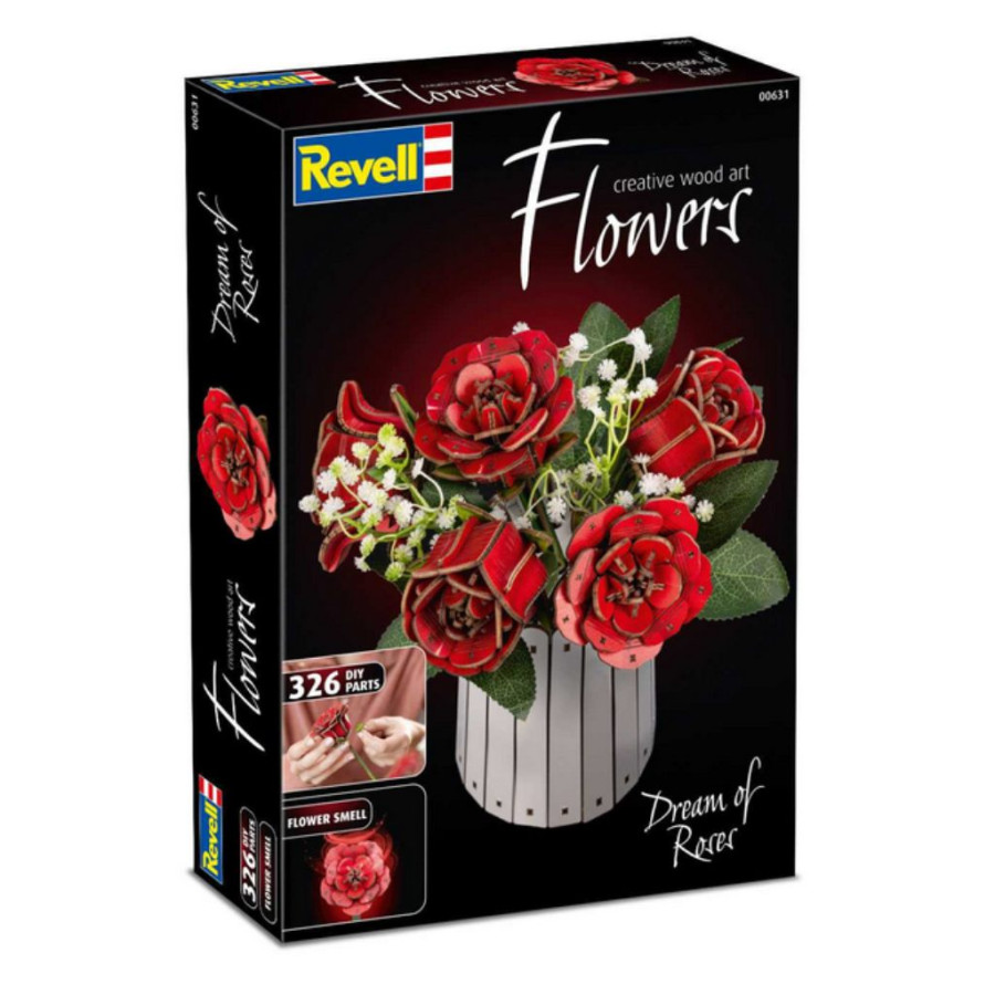 3D Puzzle Revell Flowers 00631 - Dream of Roses je prostorová stavebnice, která vám umožní z 326 dílků sestavit jednou z nejkrásnějších květin ve váze.