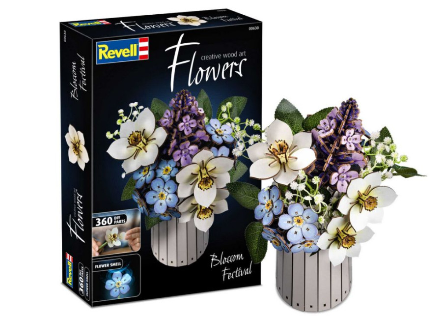 Trend „botanické stavby“ – tedy replikace rostlin z odolných materiálů – se těší celosvětově rostoucí oblibě. Je to moderní interpretace zátiší. Revell jde ještě o krok dále a spoléhá na přírodní materiál dřevo, který kombinuje udržitelnost a estetiku. Kombinace vizuální krásy a čichové přitažlivosti prostřednictvím vonného kroužku dělá z této sady inovaci v oblasti kreativního interiérového designu. Určeno pro osoby starší 14 let.