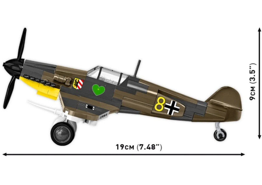 Vysoce kvalitní potisky – odolné značení a historické detaily, natištěné přímo na kostkách stavebnice, bez použití samolepek, jsou odolné vůči oděru a vyblednutí. Model má přesně zrekonstruované barevné schéma se symbolem „Zeleného srdce“, což byl znak elitní jednotky Jagdgeschwader 54 „Grünherz“.
