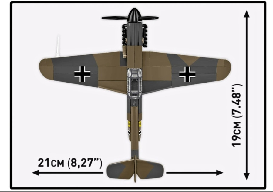 Postavte si model Messerschmitt Bf-109F z 2. světové války. Model je v měřítku 1:48 a měří 19 x 9 cm a rozpětí křídel má 21 cm. Má mnoho funkčních částí. Balení obsahuje 123 kostek stavebnice.
