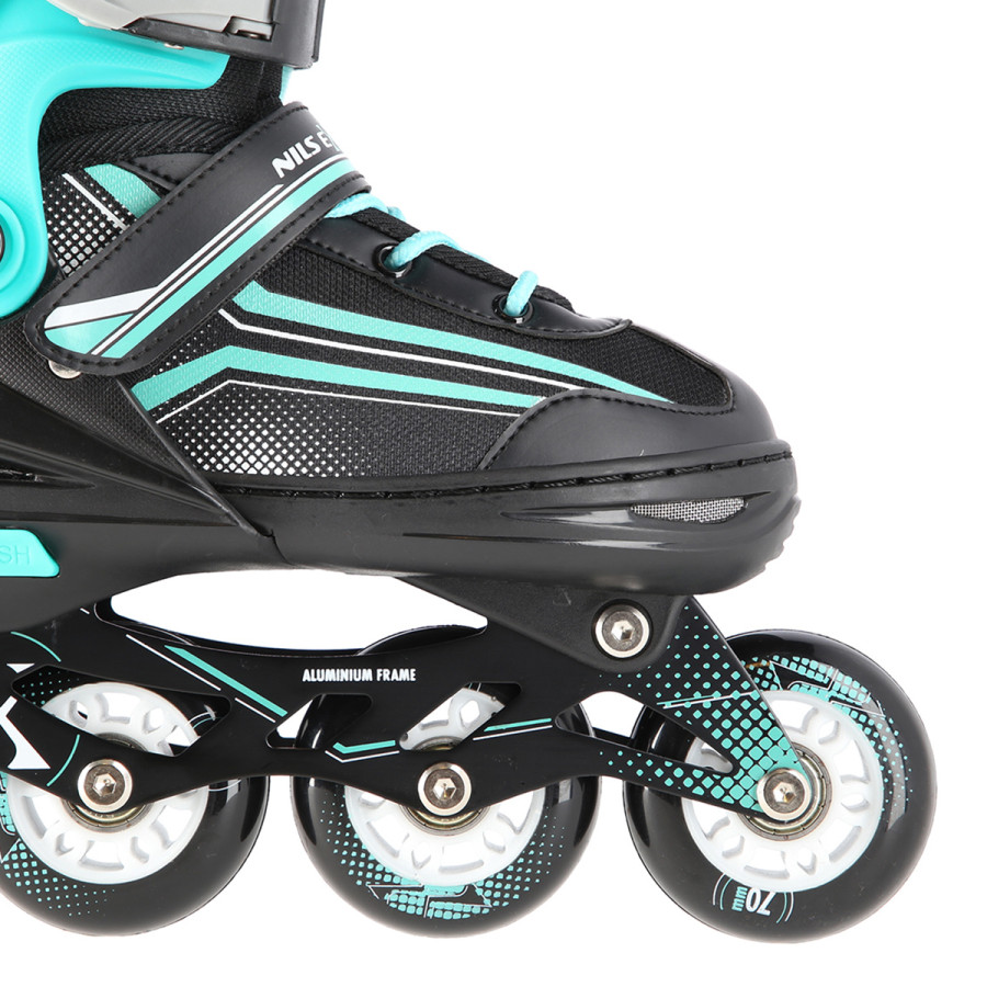 NILS Extreme NH18190 jsou kolečkové brusle s vyměnitelným nožem na led, které jsou určeny pro začínající a středně pokročilé uživatele. Hliníkový podvozek je osazen měkkými PU kolečky s ložisky ABEC7 pro svižnou jízdu.