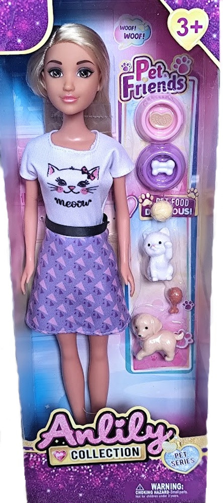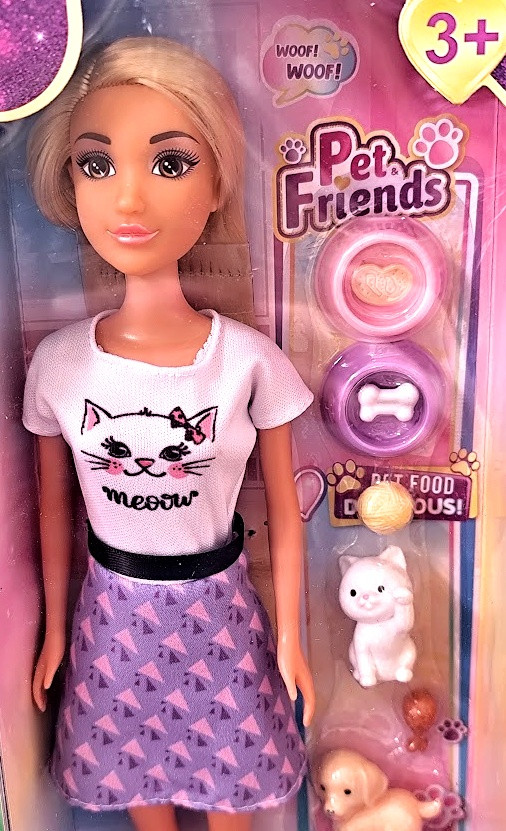 Panenka s mazlíčky a doplňky. Velikost panenky je cca 30 cm.
